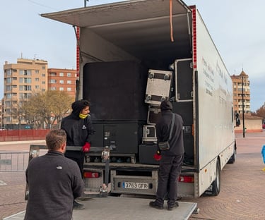 Estas imágenes son el testimonio del impacto social generado por Máquina Lumínica. En la grabación se observa la abrumadora afluencia de público en la Puerta de Hierros, reflejando la expectación por un espectáculo innovador, familiar y muy divertido