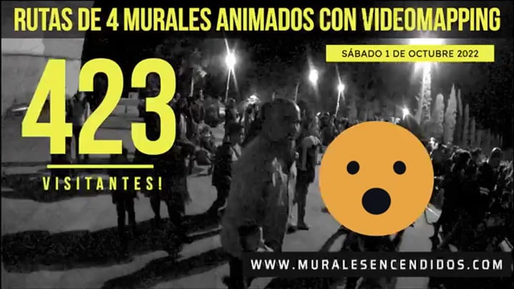 Esta pieza captura la energía y el movimiento de una de nuestras rutas de Murales Encendidos. A través de una grabación acelerada cámara en mano, acompañamos a las 423 personas que participaron en este recorrido, fluyendo de un mural a otro para descubrir cómo la luz transforma el arte urbano en el casco histórico.